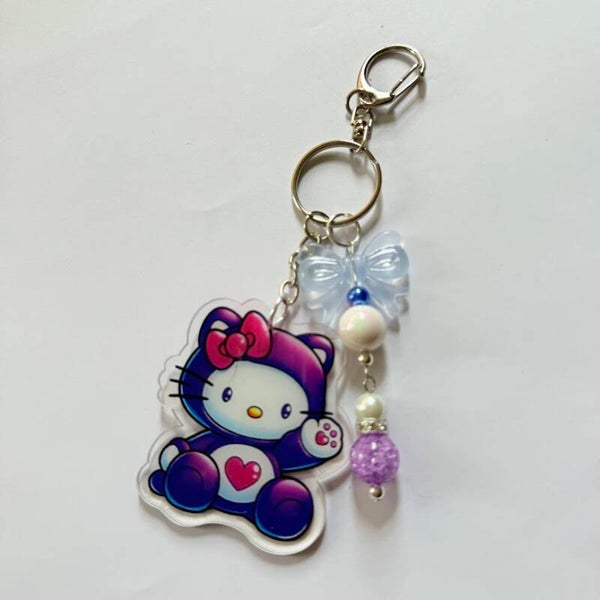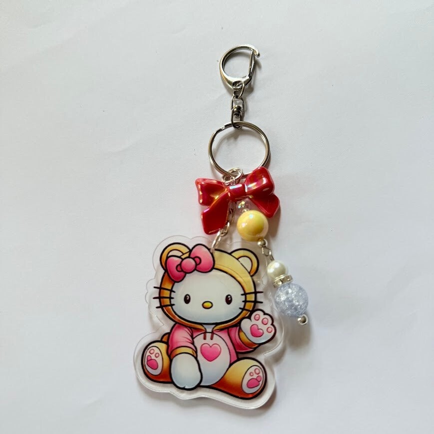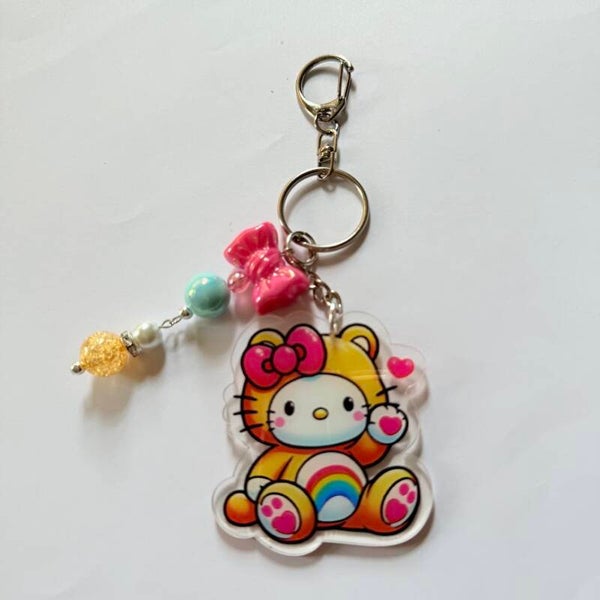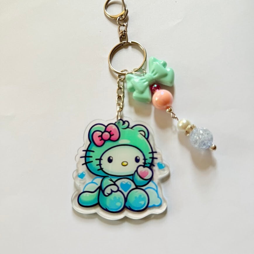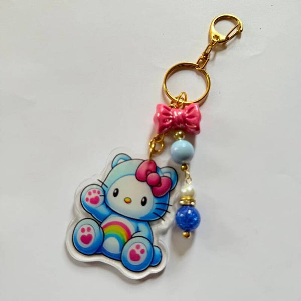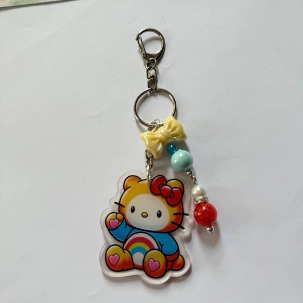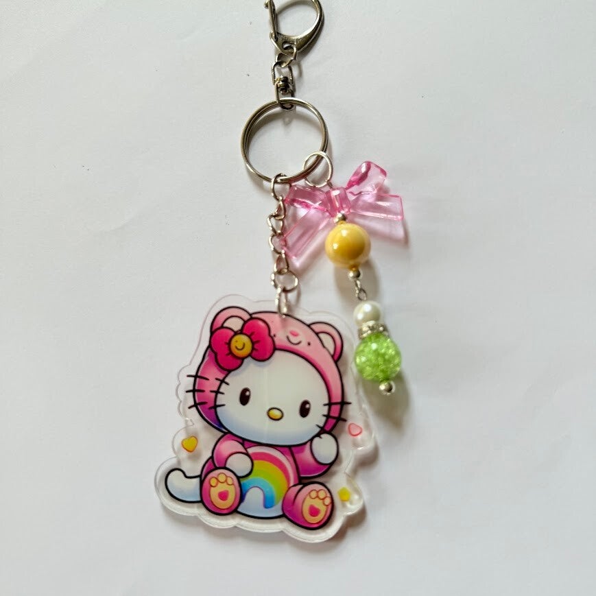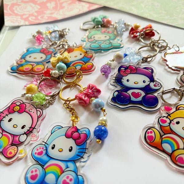 Cute Rainbow Hoodie Bear Kitty Acrylic Keychain – Beaded Acrylic Charm, 8 Styles Available